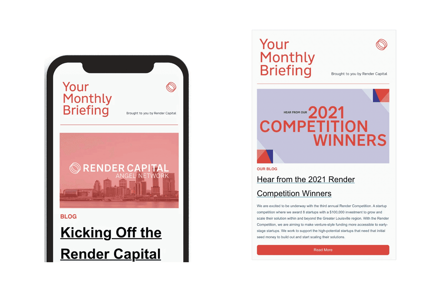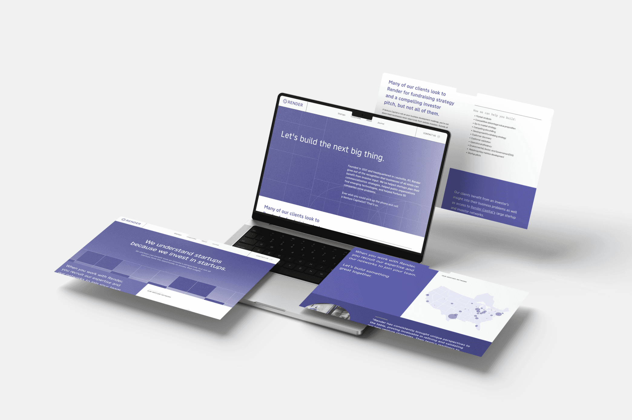 Render and Render Capital are sister organizations based in Louisville, KY. Render is a strategy and innovation consultancy helping organizations design solutions, align teams, and navigate complexity. Render Capital, by contrast, is a venture capital firm focused on increasing access to capital for early-stage startups in the Midwest and South. The two brands needed a unified yet flexible visual identity system that could support distinct missions—consulting and capital—while remaining cohesive across print, digital, and environmental applications.
