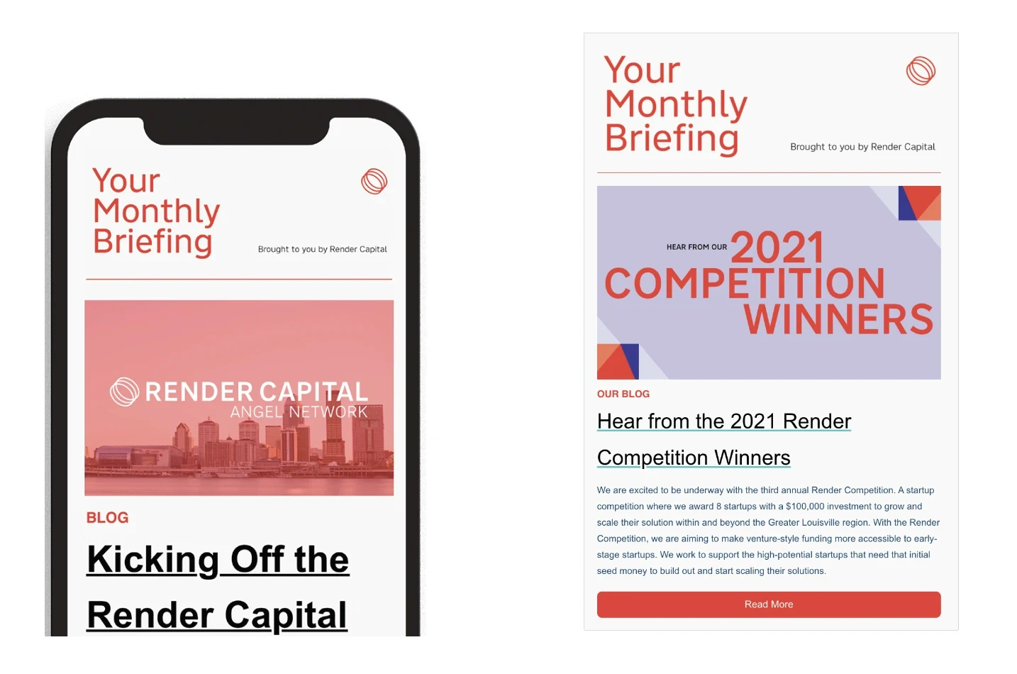 Render and Render Capital are sister organizations based in Louisville, KY. Render is a strategy and innovation consultancy helping organizations design solutions, align teams, and navigate complexity. Render Capital, by contrast, is a venture capital firm focused on increasing access to capital for early-stage startups in the Midwest and South. The two brands needed a unified yet flexible visual identity system that could support distinct missions—consulting and capital—while remaining cohesive across print, digital, and environmental applications.